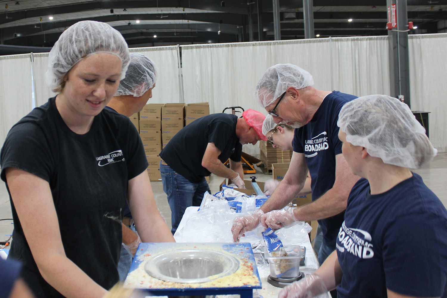 LaGrange County REMC employees got a head start on Indiana’s Electric Cooperative Community Day, which will be held on Oct. 14. REMC employees helped pack meals for Feed My Starving Children at the Michiana Event Center (MEC) in Shipshewana on Aug. 26.