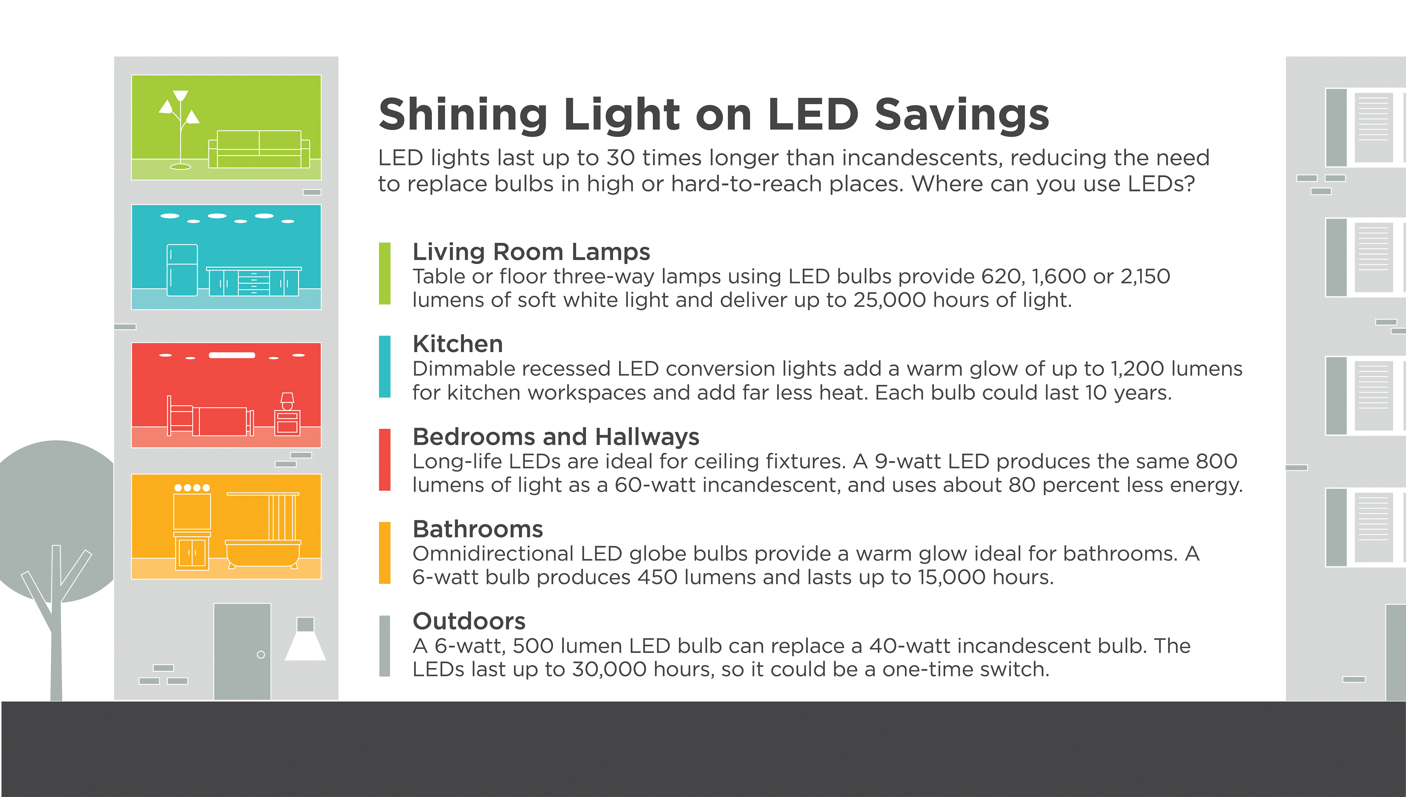 - 75 percent (up to $3) rebate available for small LED lamps and reflector floods