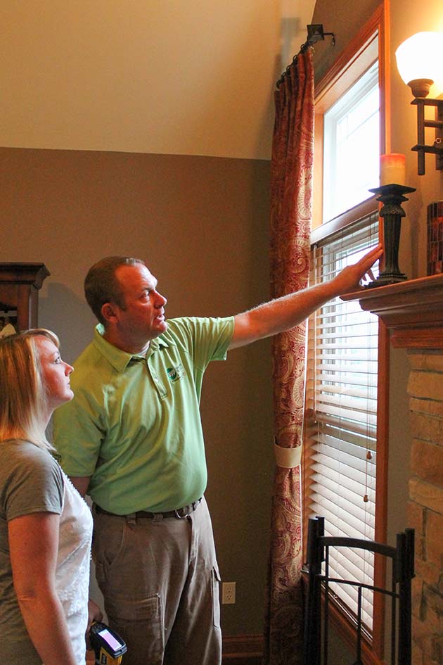 KVREMC Energy Advisor Darrell Marks performs an energy assessment, including a check for air leaks around windows, on a member’s home.