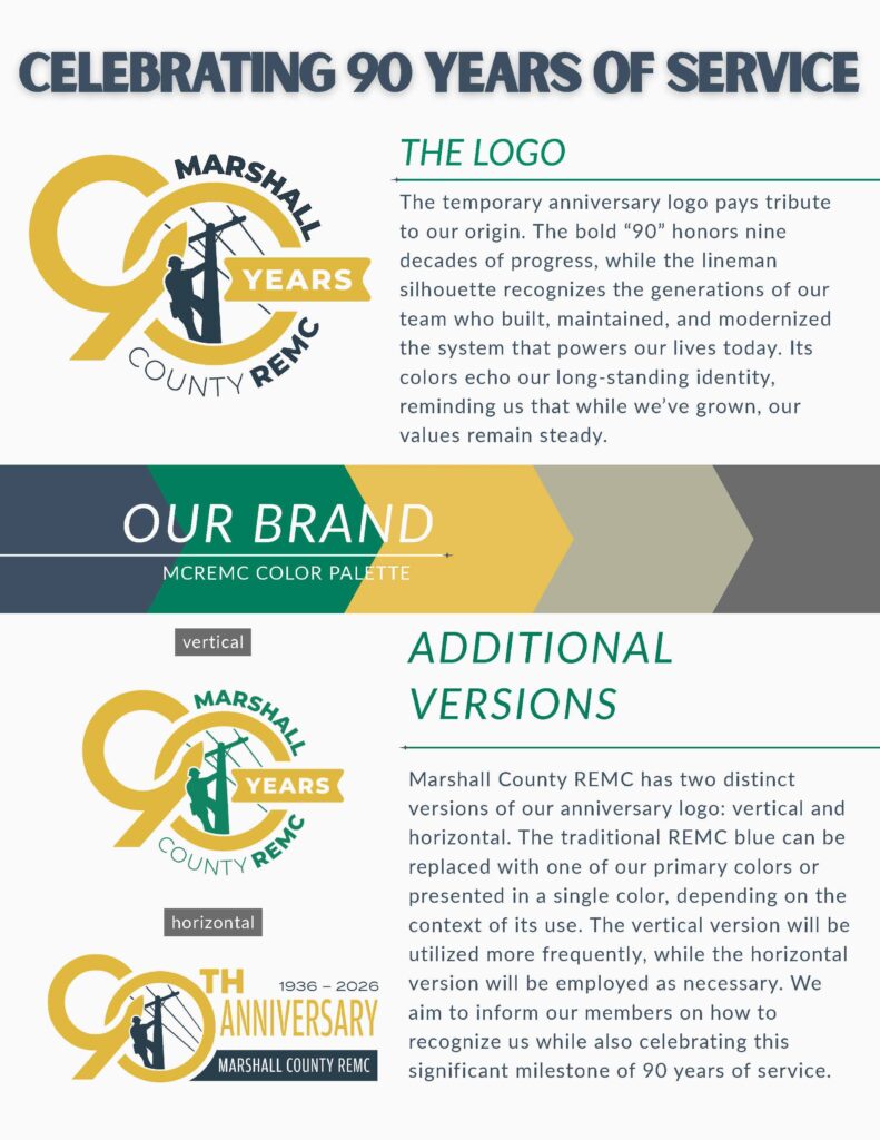 As we begin a new year, Marshall County REMC is proud to celebrate an extraordinary milestone: our 90th anniversary. Reaching this moment gives us the opportunity not only to reflect on how far we’ve come, but also to honor the people and the vision that made our cooperative possible. This month, we are excited to unveil our temporary 90th anniversary logo, which we will use throughout 2026 as a tribute to our heritage and the hardworking individuals who helped bring reliable electricity to rural Marshall County.