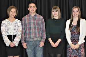 Scholarship winnters were, from left, Abigail Schroeder — Miller City HS (third place), Tyson Niese – Miller City HS (third place), Elena Niese – Miller City HS (first place), and Allison Ruhe – Miller City HS (second place). Not pictured: Jacob Kahle – Kalida HS (first place), Brian Matson – Paulding HS (second place), and Abigail Hilvers – Ottoville HS (third place).