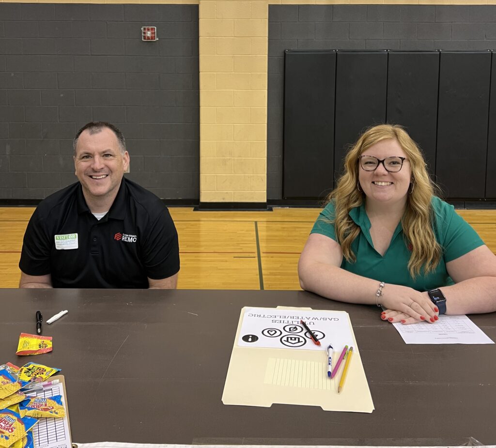 Carissa Ziemek and TJ Garner recently worked the utilities table at Rochester High Schools Reality Store. During this mock event students are given a career, and salary and get a taste of adult reality.