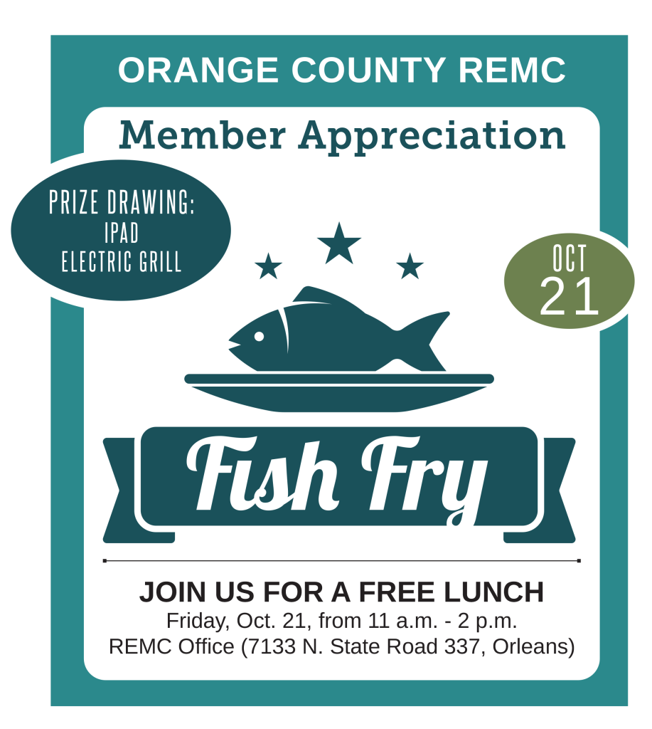 Join us for a fish fry on Oct. 21 By Indiana Connection Posted on Oct 07 2022 in Orange County REMC Related Stories A season of gratitude and community 2025 Member Appreciation Day Join us for a Christmas toy drive