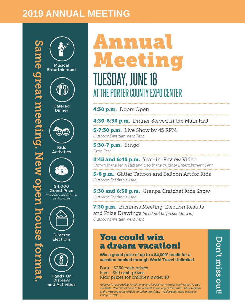 Join us for your 2019 annual meeting on June 18! By Indiana Connection Posted on May 28 2019 in Kankakee Valley REMC Related Stories Smart energy choices, shared savings KV REMC 2026 Scholarship opportunities Water heater switch program discontinues Jan. 1