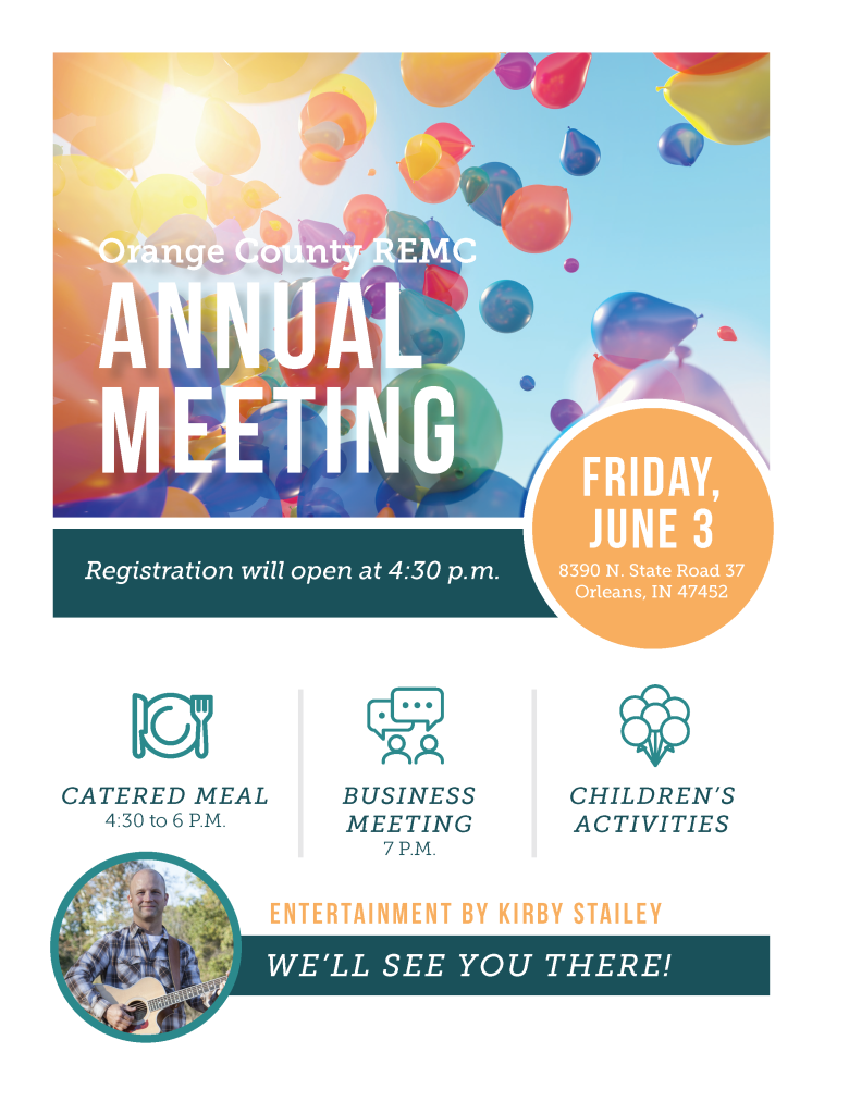 Join us June 3 for your annual meeting! By Indiana Connection Posted on Apr 03 2022 in Orange County REMC Related Stories A season of gratitude and community 2025 Member Appreciation Day Join us for a Christmas toy drive
