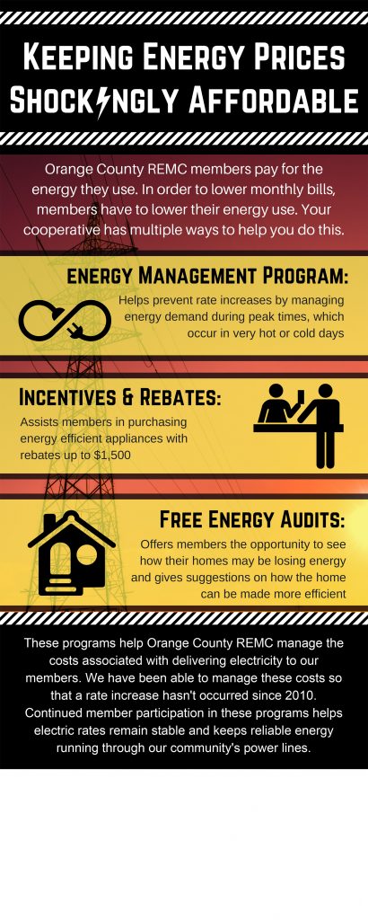 Keeping Energy Prices Shockingly Affordable By Ellie Schuler Posted on Jul 30 2018 in Orange County REMC Related Stories A season of gratitude and community 2025 Member Appreciation Day Join us for a Christmas toy drive