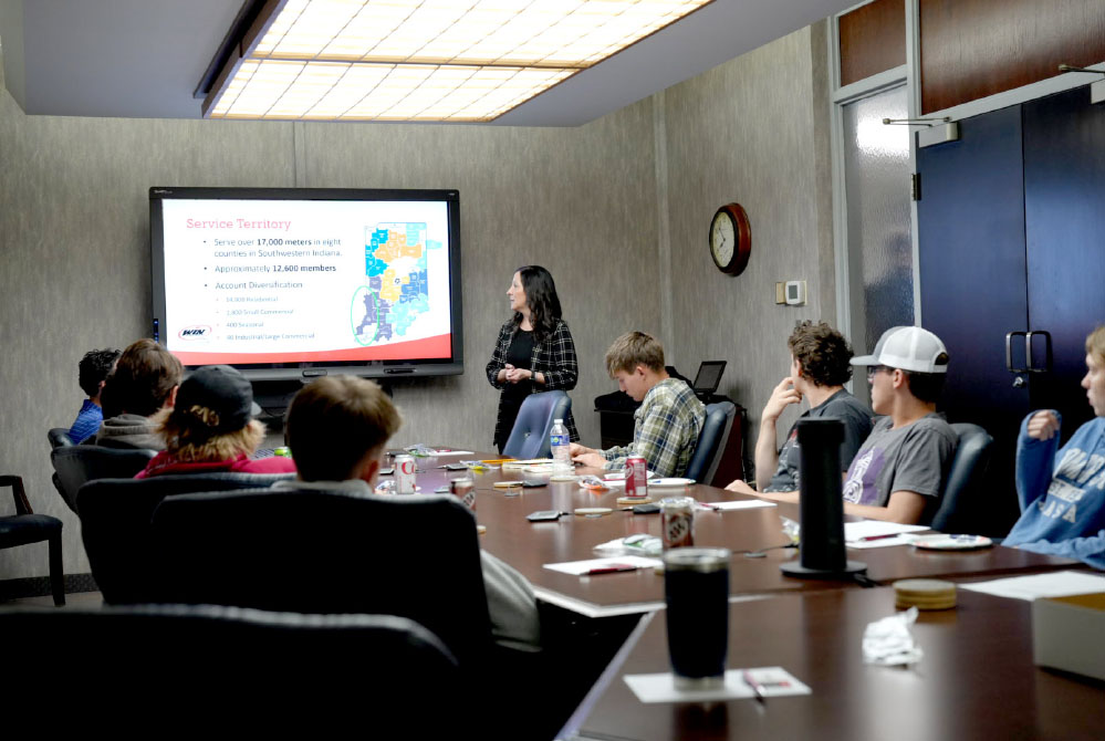 Students with the Knox County CEO program visited the Vincennes office. Juniors and seniors from schools throughout the county learned about the cooperative business model and career opportunities in the industry and took bucket truck rides.