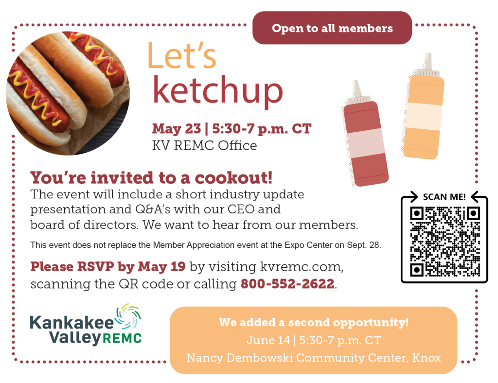 Let’s ketchup on May 23! By Indiana Connection Posted on May 03 2023 in Kankakee Valley REMC Related Stories Smart energy choices, shared savings KV REMC 2026 Scholarship opportunities Water heater switch program discontinues Jan. 1