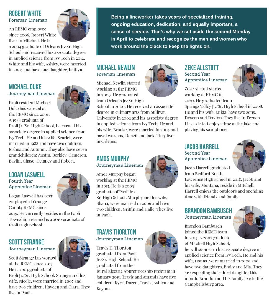 Each year, we mark a special day to say “thank you” to the lineworkers that keep the power flowing to the homes, farms and businesses in our community. Please join us by visiting our the Orange County REMC Facebook page and leaving a note of appreciation for our hard-working linemen. #THANKALINEWORKER
