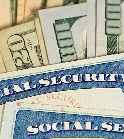 USA Social security cards laid on dollar bills