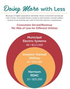 The REMC’s employees and board members work hard to keep rates as low as possible while striving to maintain reliability at a level that meets member expectations. As you can see from the chart on the lower right of the next page, your local cooperative is one of the top co-ops in the nation at keeping local operating costs low. In fact, over the past five years, Harrison REMC has outperformed 93 percent of the 809 measured cooperatives across the nation in managing local operating costs.