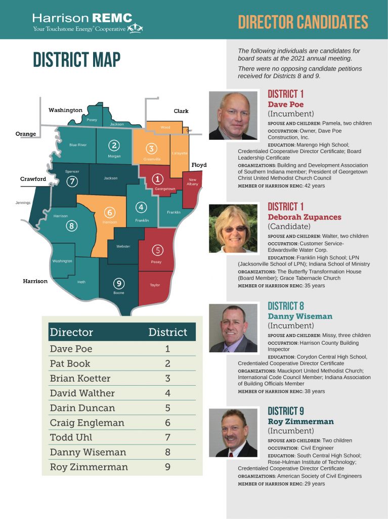 Meet your candidates for the board of directors By Indiana Connection Posted on Mar 02 2021 in Harrison REMC Related Stories A season of gratitude and community Holiday hours 2025 Time of day hours