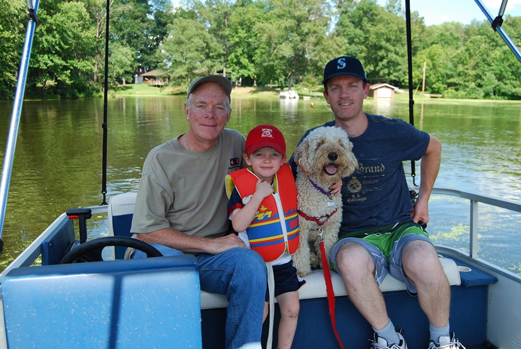 Like father, like son, like grandson. Mark Owens shared this photo of his son Scott, grandson Hayden and dog Freddie doing what they enjoy together — fishing in the boat on the lake.