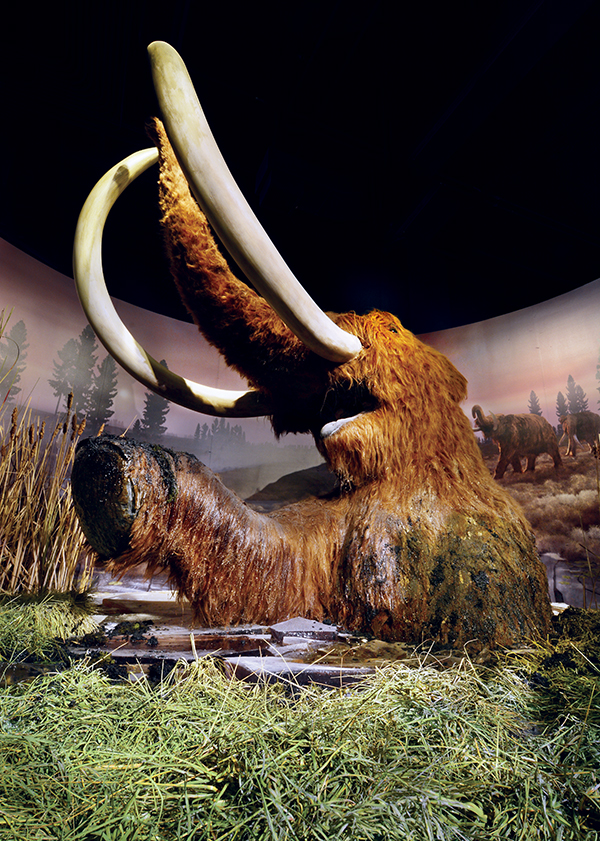 How Fred the mastodon (on the opposite page) met his demise near present-day Fort Wayne during the last Ice Age some 13,000 years ago is not certain. But many mastodons have been found in what were once ancient bogs around Indiana. Part of the redesigned “Frozen Reign” gallery depicts the giant frame of a mastodon cracking through the ice on a bog and, despite trumpeting and thrashing about, it would have languished until it drowned, starved or was attacked by more mobile meat eaters, like bears or wolves.