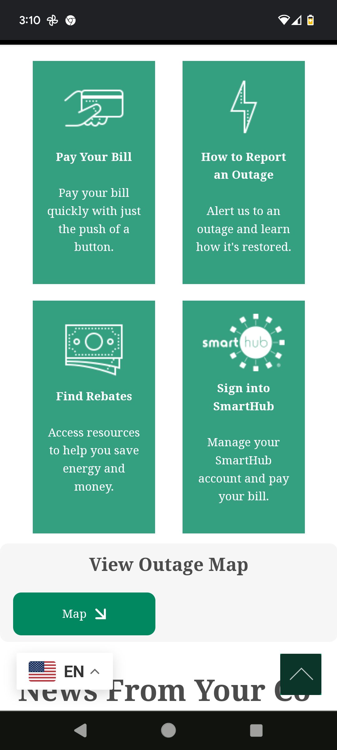 Want to pay your bill or report an outage? It’s only a click away on our homepage (shown above), under the main banner.