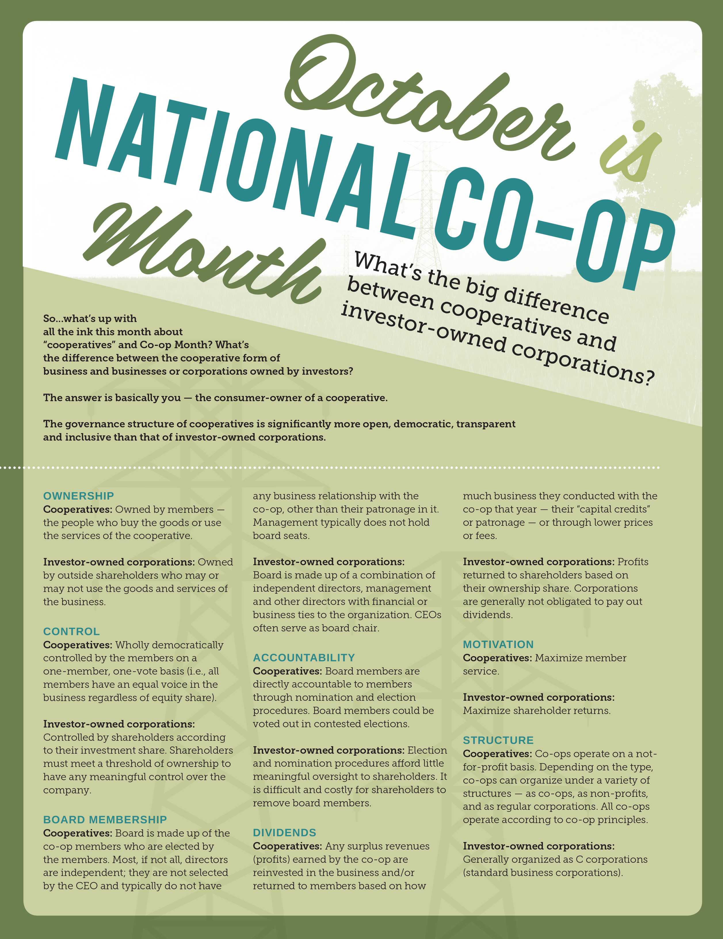 October is National Co-op Month By Ellie Schuler Posted on Oct 03 2017 in Clark County REMC Related Stories Hoosier Energy advances pollinator habitat conservation efforts Providing reliable service while staying financially strong Donate to our food drive