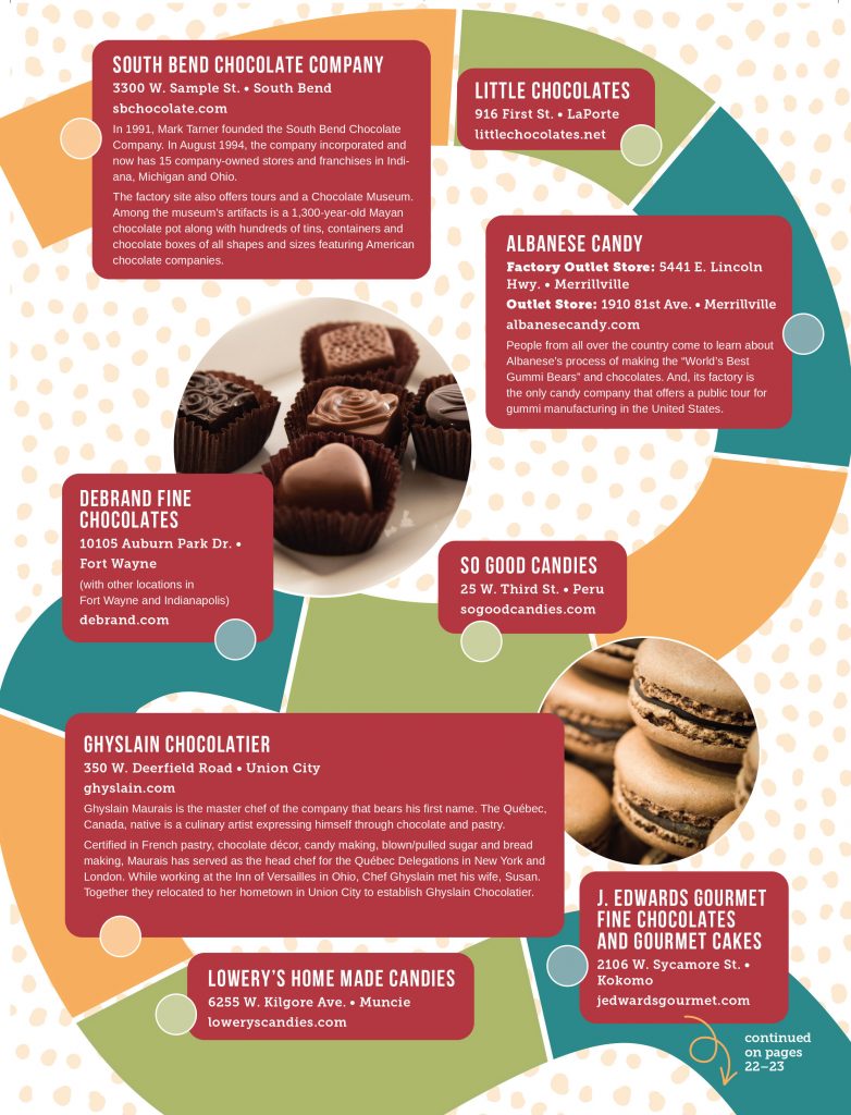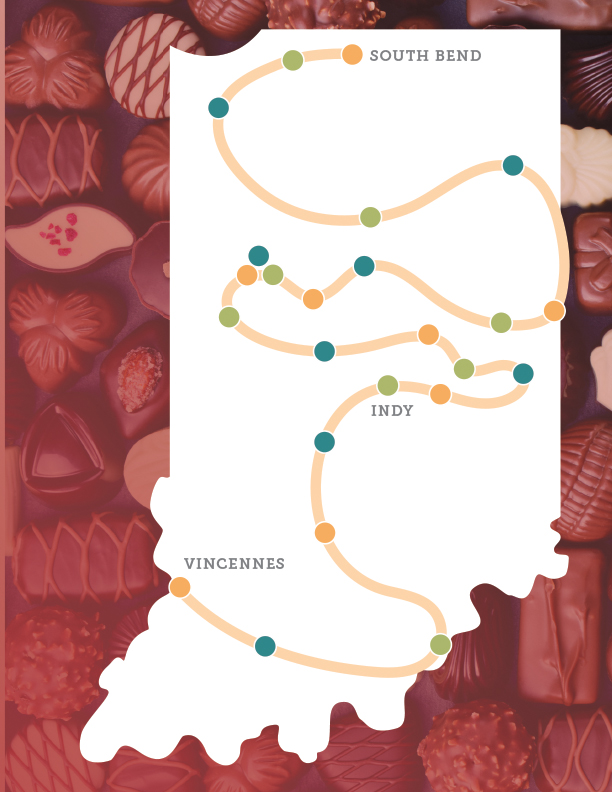 Fortunately, Hoosiers have miles and miles and miles of chocolate makers and candy shops where they can find just the right kind of sweet to win the heart of their sweetheart this Valentine’s Day. Each has individual stories as unique as the candies and flavors they produce.
