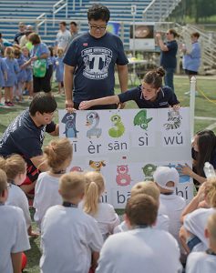 Students learn to count in Chinese as part of Trine’s “Walk Into My Future” program.