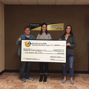 Youth Leadership Marshall County received a $500 grant. Karen Richey, Purdue Extension director; Kelsey Sajdera, Purdue Extension educator; and Emily Howard, Marshall County REMC communications specialist, pose for a photo.