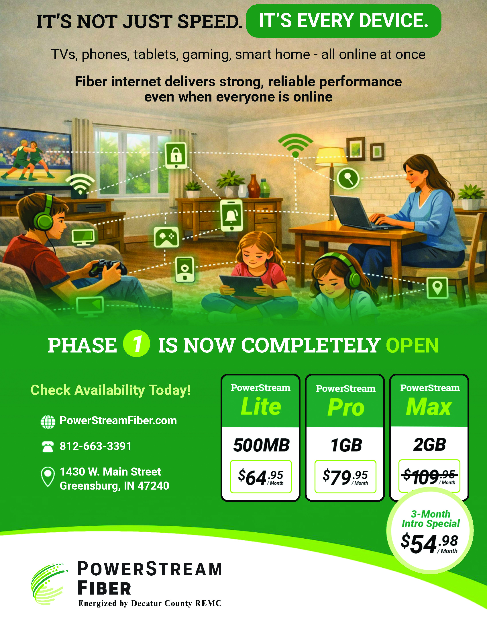 Phase 1 of our fiber internet is now open By hhuffman Posted on Apr 07 2026 in Decatur County REMC Related Stories Keeping the lights on – today, tomorrow, and years down the road Member event set for April 23 DCREMC Annual Meeting 2026 is June 12