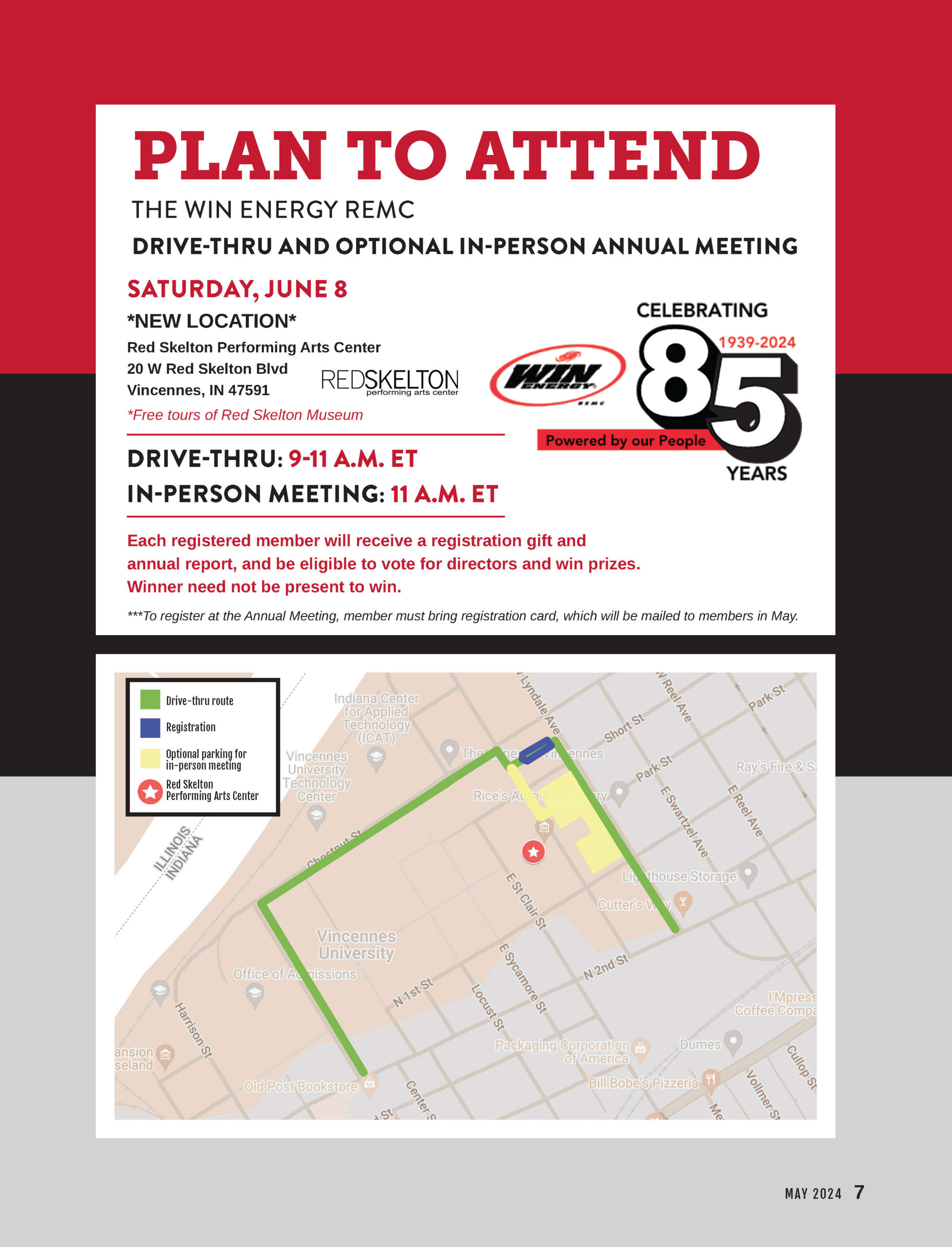 Plan to attend your annual meeting June 8 By Indiana Connection Posted on May 25 2024 in WIN Energy REMC Related Stories Hoosier Energy advances pollinator habitat conservation efforts Growing together through education and training In the community