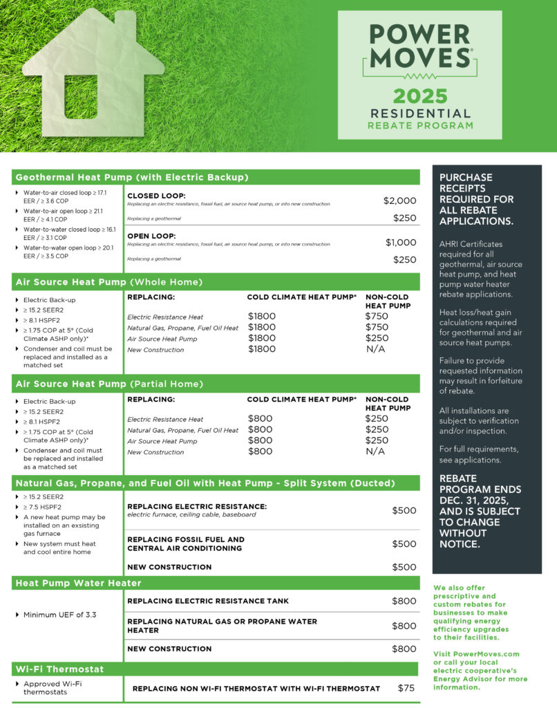 Power Moves 2025 residential rebate program By Indiana Connection Posted on Jul 08 2025 in Heartland REMC Related Stories Reflecting on 2025, building for 2026 Ready for the unexpected: How to prepare for winter storms Home lighting 101