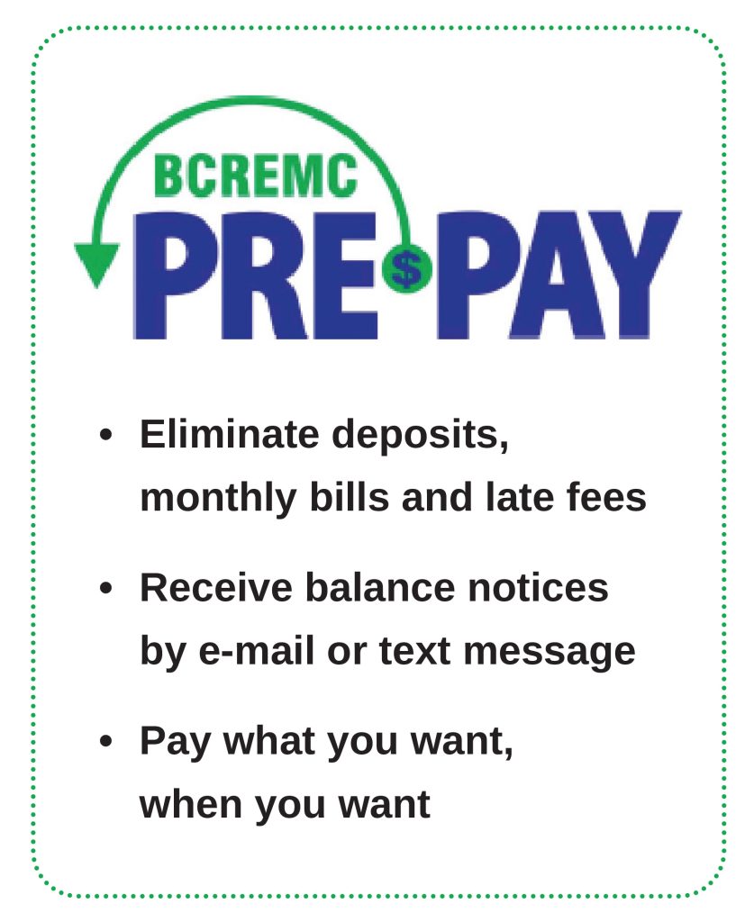 Sign up for the Prepay option and make an initial payment into your account to get the electricity flowing. No deposit is required for Prepay, and members will not have late fees. Existing members who wish to switch to Prepay will have any deposit applied to their accounts. Some restrictions apply.
