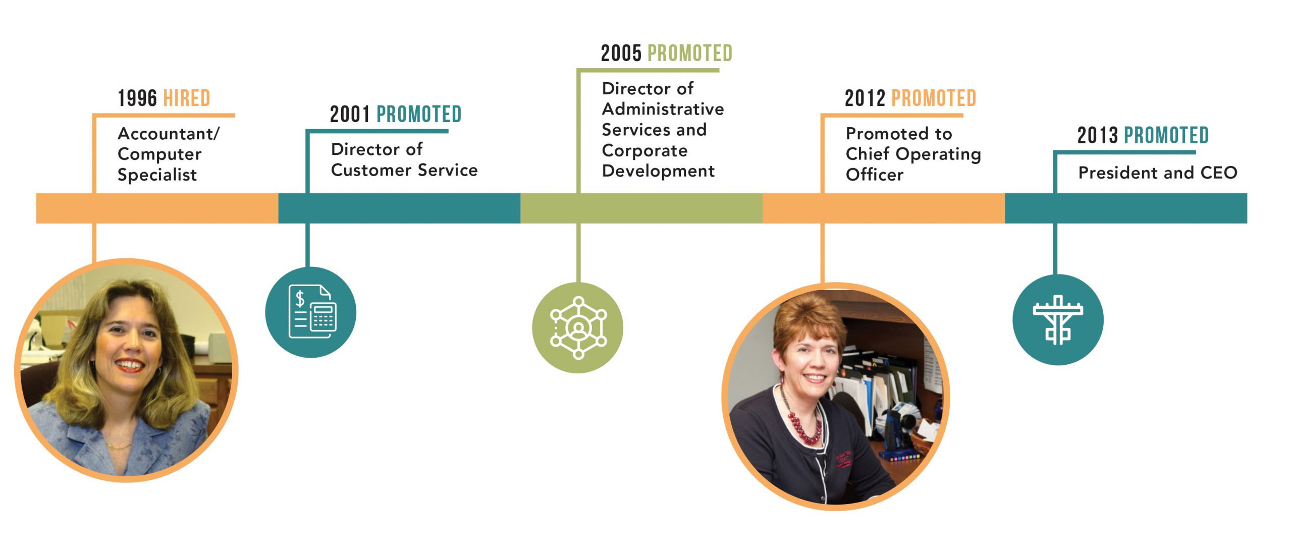 When she became CEO, she was the only female chief executive of a cooperative in Indiana and only the second in the 85-plus year history of Indiana’s REMCs. In more recent years, two other women have become CEOs at Indiana electric cooperatives and a third has become the CEO at a power generation and transmission cooperative.