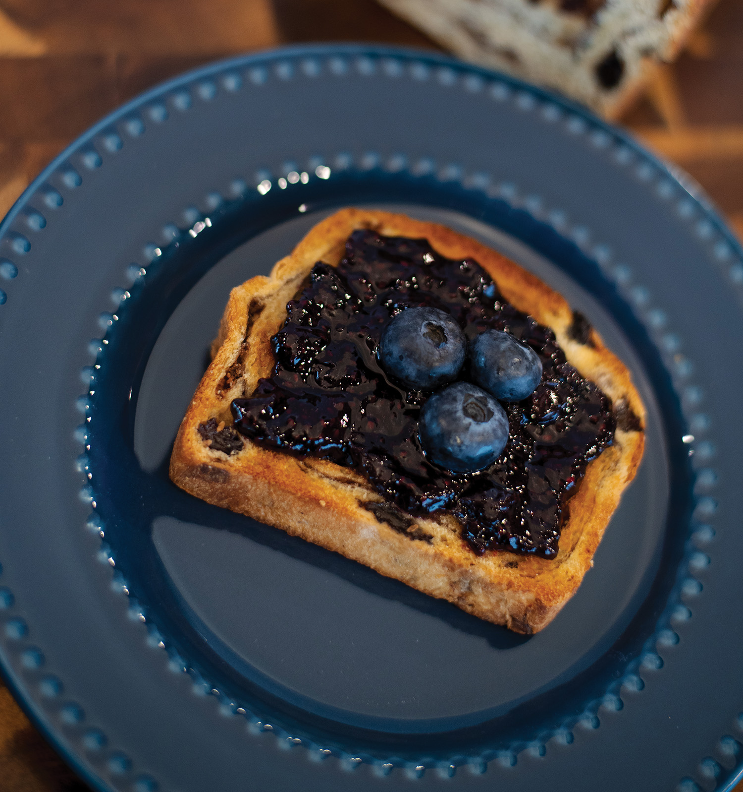 Add the blueberries, chia seeds and honey or maple syrup to a small pot and cook over medium heat for about 30 minutes, mashing the berries with a spoon while stirring. Remove from heat; the jam will thicken as it cools. Spread on toast to serve and store any remaining jam in a glass jar in the refrigerator.