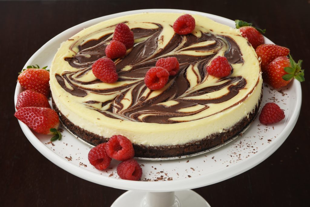 Grease bottom of a 9-inch springform pan. Prepare basic brownie mix as directed on the package; pour into springform pan. Bake at 350 F for 15 minutes. Combine cream cheese, sugar and vanilla extract, mixing at medium speed with electric mixer until well blended. Add eggs, one at a time, mixing well after each addition. Pour over brownie layer. Spoon melted chocolate over cream cheese mixture. Cut through batter with knife several times for a marble effect. Bake at 350 F for an additional 35-40 minutes. Loosen cake from rim of pan; cool before removing pan’s rim. Chill well. If desired, garnish with whipped cream, fresh red raspberries and chocolate shavings.