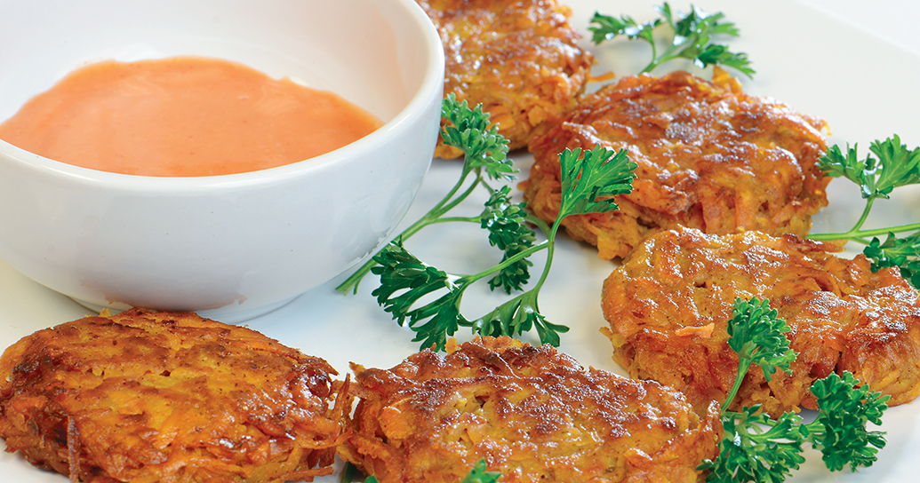 Sweet Potato Fritters with Sweet and Spicy Sauce