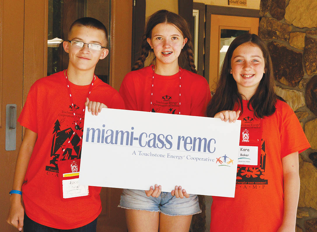 Miami-Cass REMC sponsored three youths to attend the annual Touchstone Energy Camp. The camp was held in June at YMCA Camp Tecumseh in Brookston. Students participating were Kara Baker, Blaire Pointe Elementary; Ashleigh Evans, Maconaquah Middle School; and Jacob Fuchs, St. Bernard Catholic School.