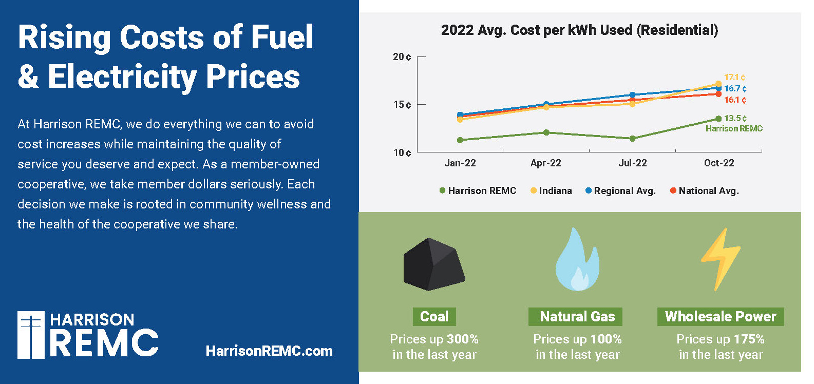 Rising cost of fuel and electricity prices By Indiana Connection Posted on Mar 01 2023 in Harrison REMC Related Stories A season of gratitude and community Holiday hours 2025 Time of day hours