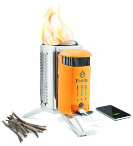 No need to rub sticks together to cook meals and charge your cell phone with the BioLite CampStove 2. It turns sticks and twigs into smokeless flames that can boil a liter of water in five minutes while also generating 5 volts of electricity to charge USB devices. $130.