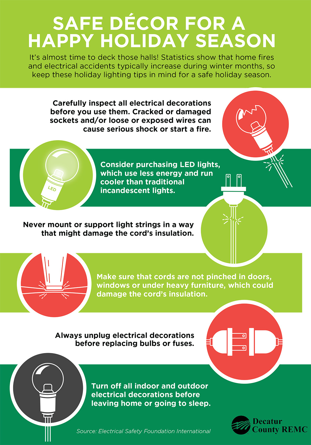 Safe Decor for a Happy Holiday Season By Ellie Schuler Posted on Nov 15 2018 in Decatur County REMC Related Stories Unclaimed capital credits Powering progress Join us for Cocoa and Cookies on Dec. 16