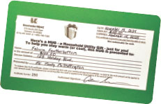 Discount: 10% off any item $20 and over, paid by cash or check. 5% off with a credit card.