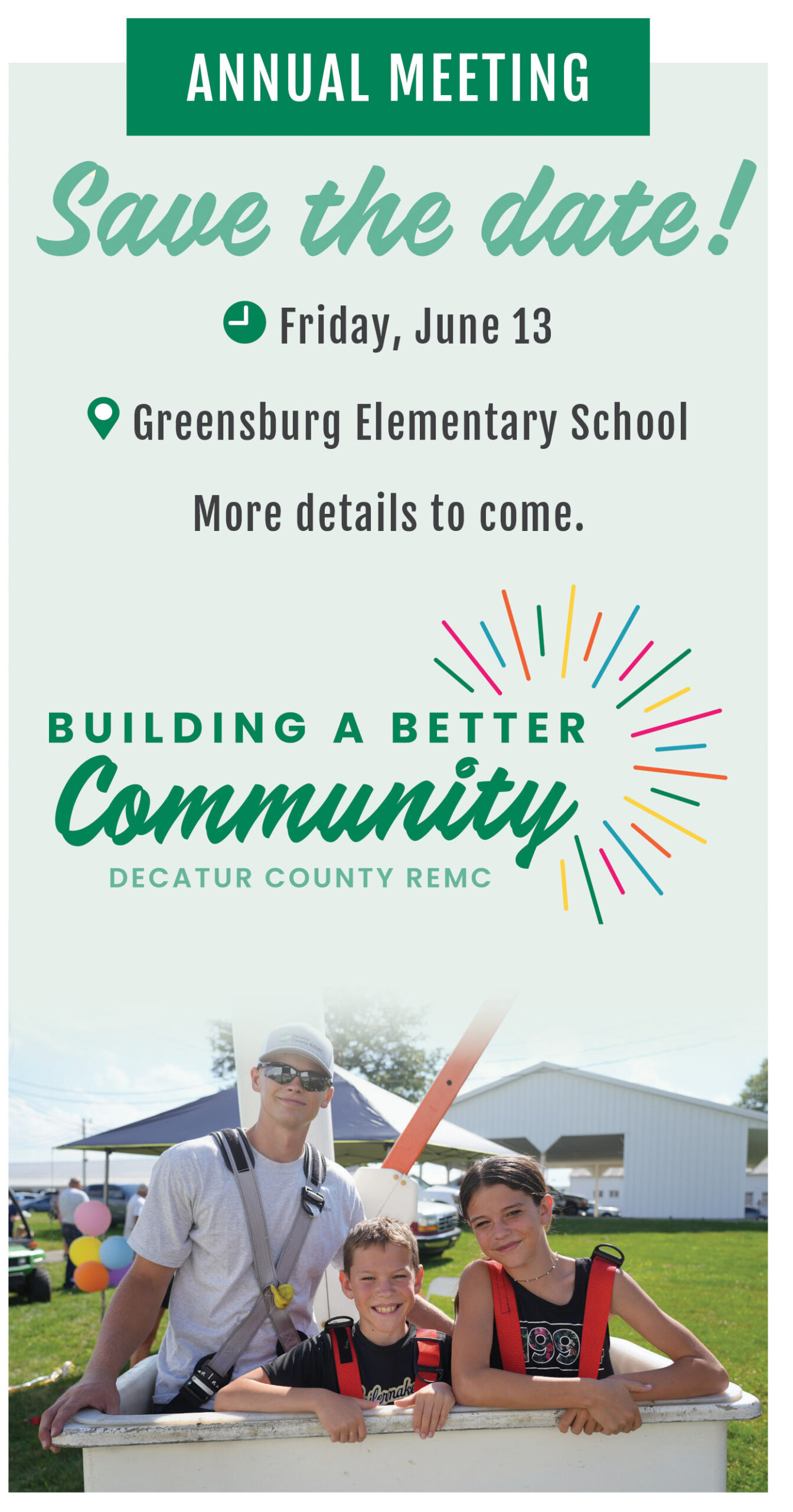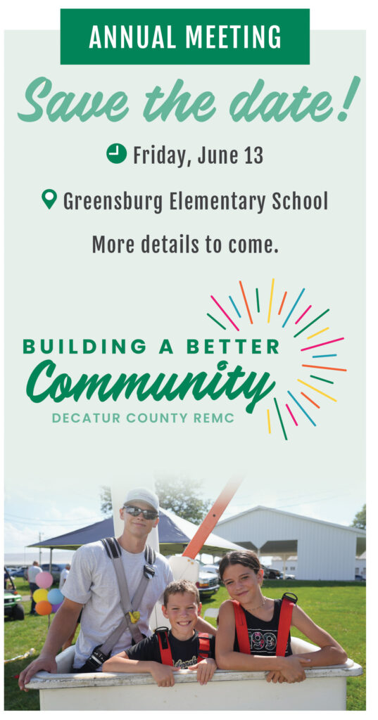 Save the date for your Annual Meeting! By Indiana Connection Posted on Mar 06 2025 in Decatur County REMC Related Stories Unclaimed capital credits Powering progress Join us for Cocoa and Cookies on Dec. 16