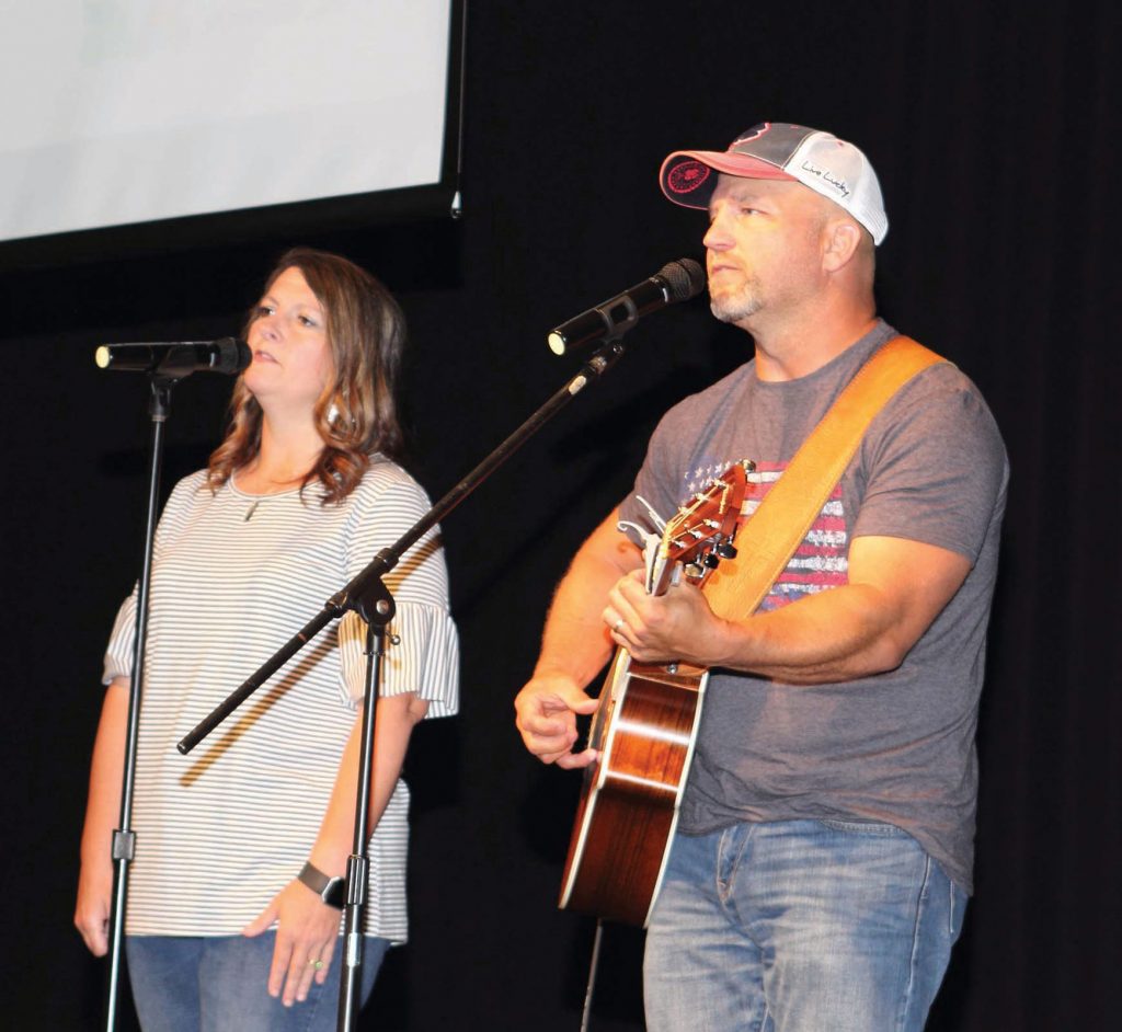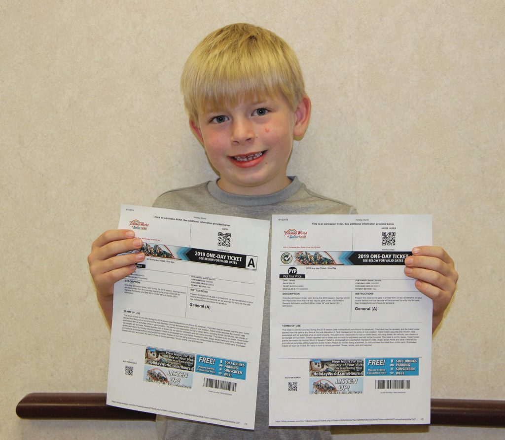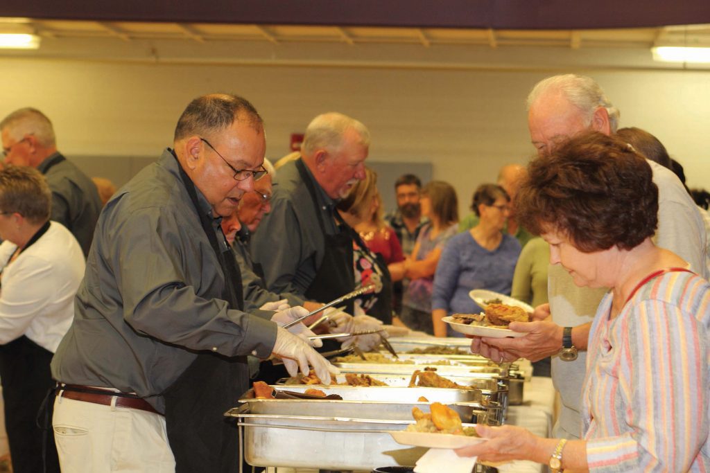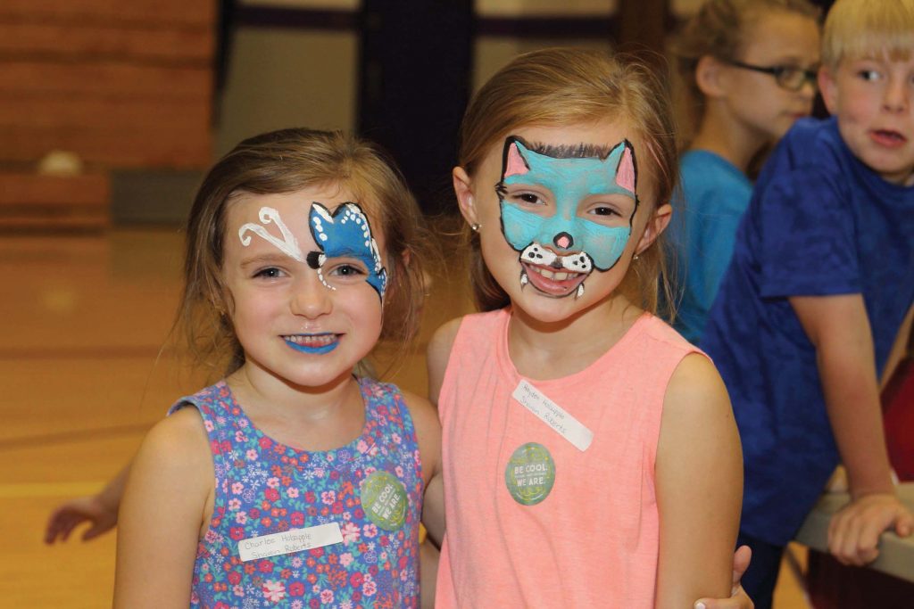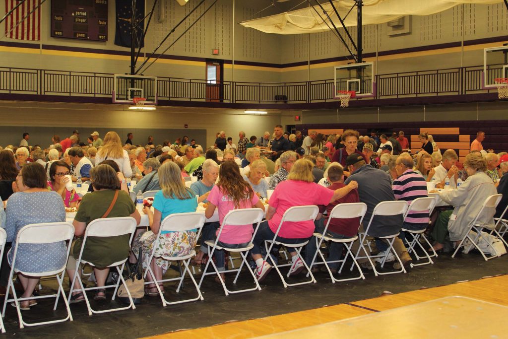 Orange County REMC directors serve up tasty food, catered by the Schnitzelbank restaurant. Two young members show off their freshly painted faces at the annual meeting. The kids’ program also featured inflatable bounce slides. Jacob Harris won the children’s grand prize, two tickets to Holiday World and Splashin’ Safari. Members filled the Paoli Jr./Sr. High School gym (left) to enjoy a catered meal before the business meeting. Matt Deaton, CEO of Orange County REMC, is pictured Lieselotte Crane, who won $500 at the annual meeting. Kirby Stailey (right) provided entertainment. An array of cupcakes and sweets were the featured dessert.