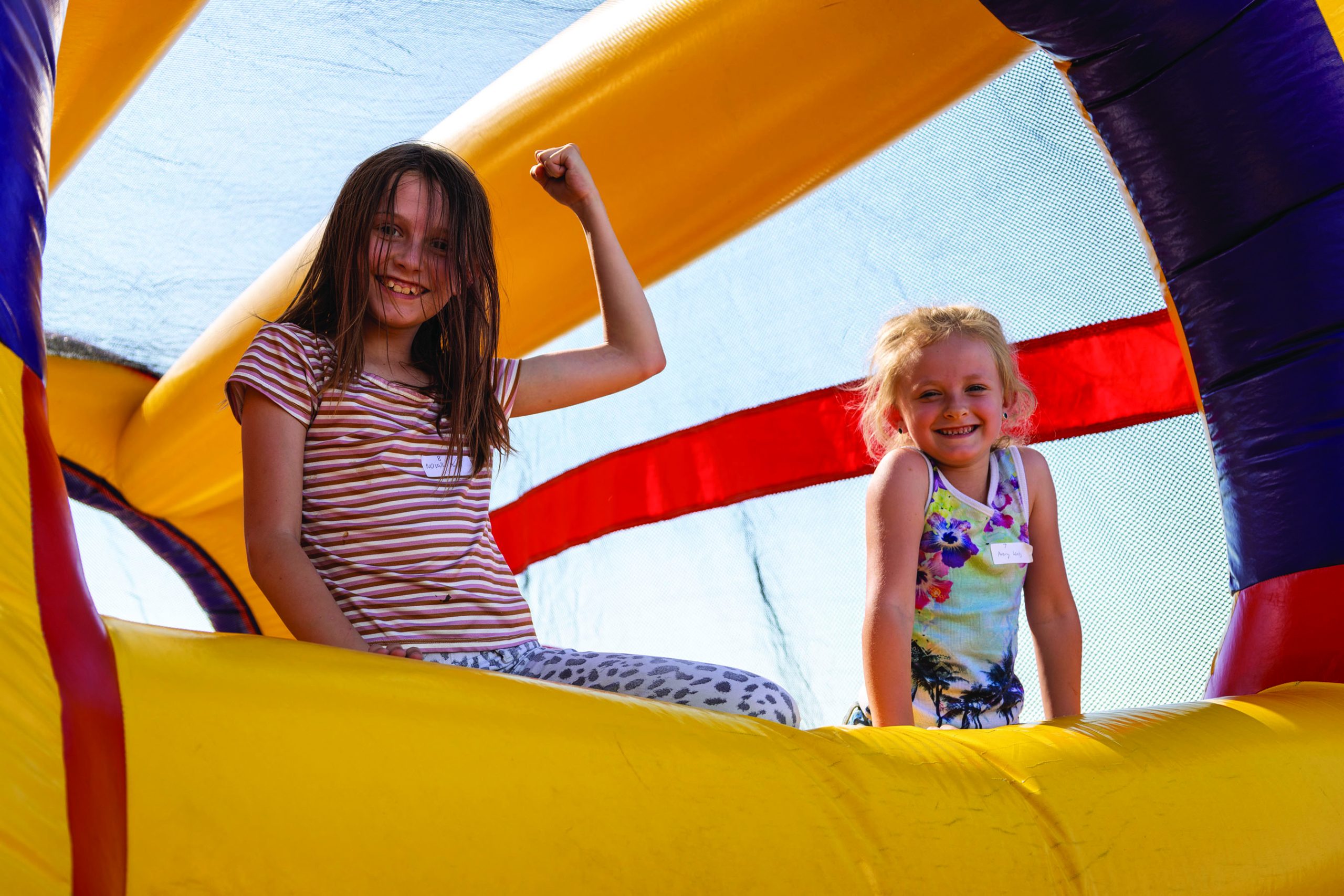 Two young members enjoy the inflatables at the high-energy children’s program, which also included goodie bags, various craft projects and airbrush art.
