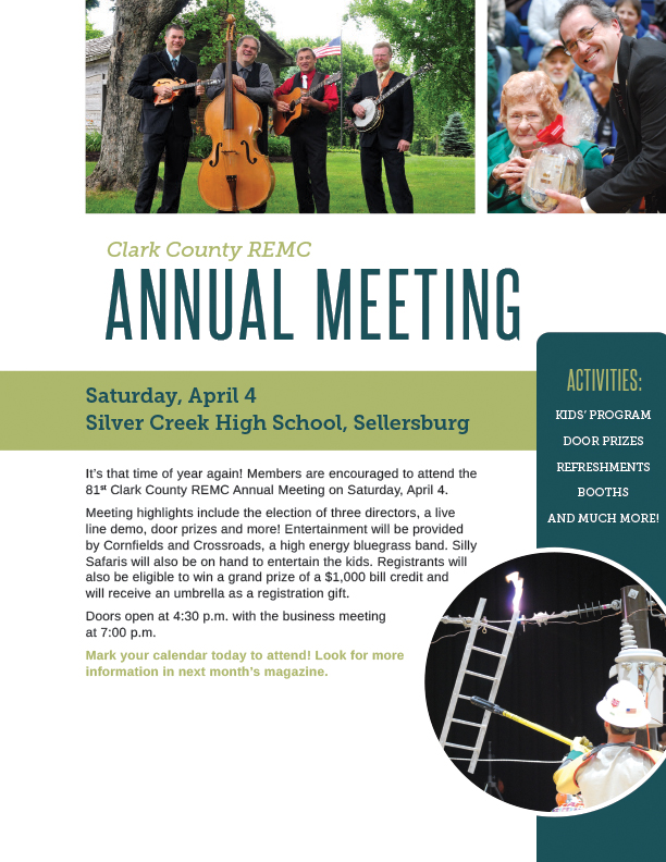 See you at your annual meeting! Clark County REMC annual meeting is April 4 By Indiana Connection Posted on Feb 07 2020 in Clark County REMC Related Stories Hoosier Energy advances pollinator habitat conservation efforts Providing reliable service while staying financially strong Donate to our food drive