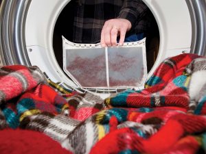 Clothes Dryer Lint Trap Lifted to Clean from Inside Close-up