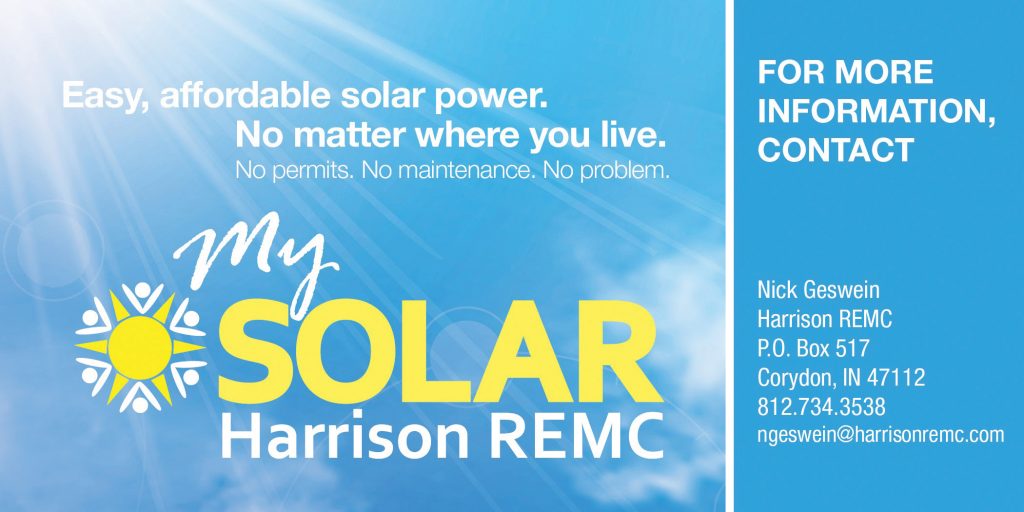 Sign up for My Solar By Indiana Connection Posted on Jul 25 2019 in Harrison REMC Related Stories A season of gratitude and community Holiday hours 2025 Time of day hours