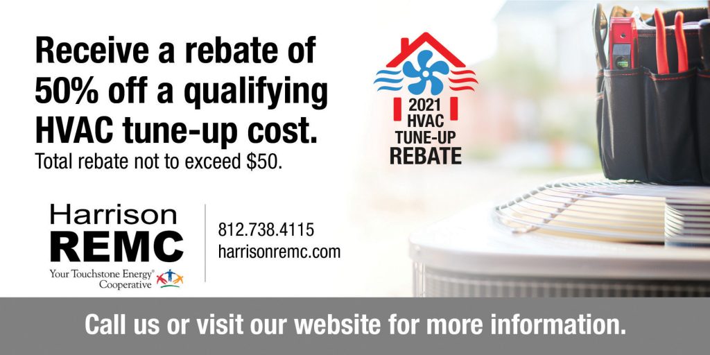 Sign up for our HVAC Tune-up rebate By Indiana Connection Posted on Aug 31 2021 in Harrison REMC Related Stories A season of gratitude and community Holiday hours 2025 Time of day hours