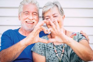 Love and valentine’s day concept for cheerful happy couple of senior man and woman caucasian people together doing hearth with hands and smile – happiness after life together forever By hhuffman Posted on Feb 10 2020 in
