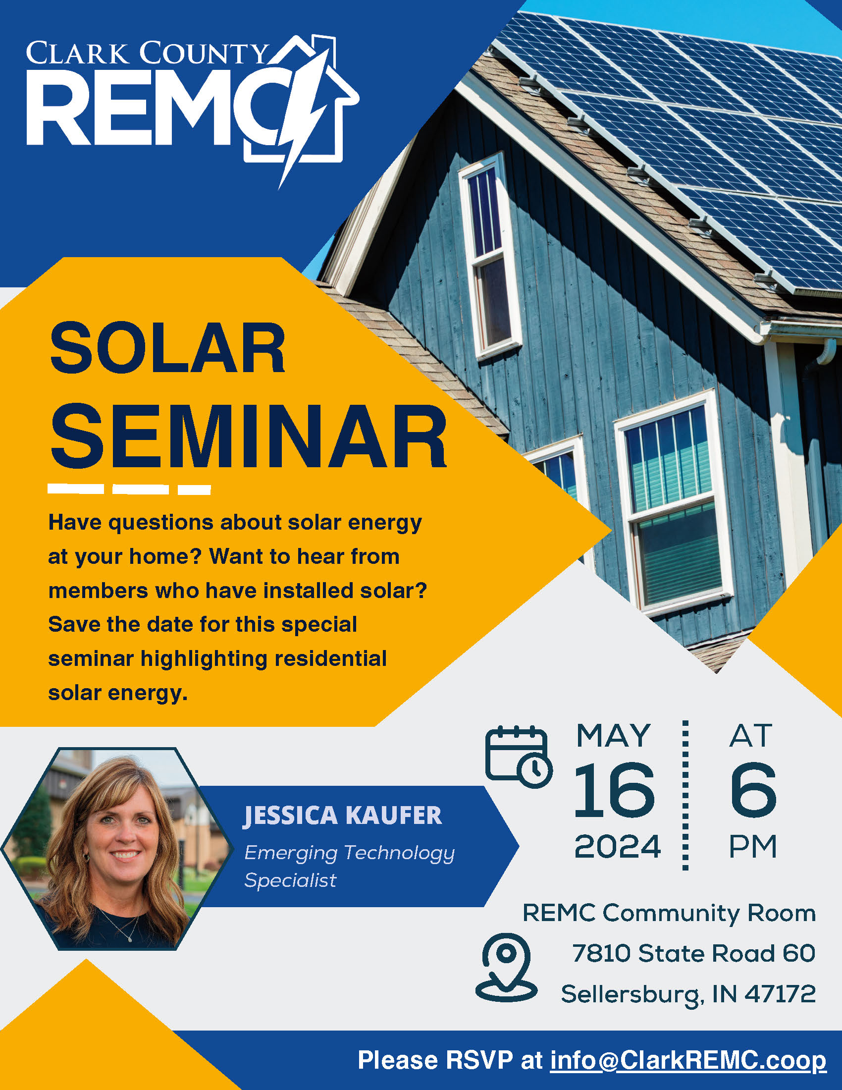 Solar seminar set for May 16 By hhuffman Posted on Apr 08 2024 in Clark County REMC Related Stories Hoosier Energy advances pollinator habitat conservation efforts Providing reliable service while staying financially strong Donate to our food drive
