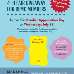 If an outage occurs, know that MCREMC linemen are out working as quickly and safely as possible to restore power. Stay informed by following outage updates on our Facebook page at facebook.com/MarshallCountyRemc and our website at marshallremc.com (scroll to the bottom of the home page for Facebook feed).