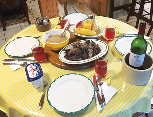 The results were excellent! Paired with blackberry wine, the meal included mashed potatoes, fresh sweet corn, homemade bread and squirrel gravy made from the pan drippings from the iron skillet. As for the squirrel, it was full flavored with a touch of blackberry and fall-off-the-bone tender.
