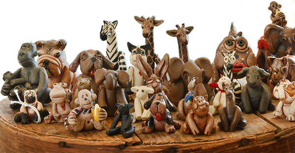 “Working with clay gives form to my desire to capture the artistic notions or creative insights we have as children and to share those imaginative moments with others,” she said describing her art. “My hands are constantly busy molding shaping, pressing, painting, tying or hinging.”