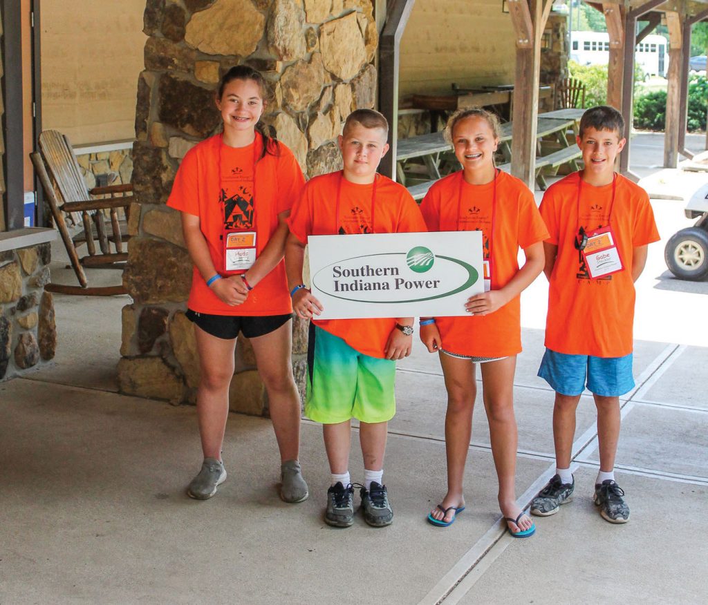 Campers enjoyed swinging into the Richard G. Marsh Lake at Camp Tecumseh. Touchstone Energy campers (from left) Hadley Leibering, Eli Knepper, Mayci Litherland and Gabe Steckler enjoyed everything the camp had to offer Where else but Touchstone Energy Camp can a kid take a bucket truck ride? The Touchstone Energy Camp itinerary included plenty of pool time.