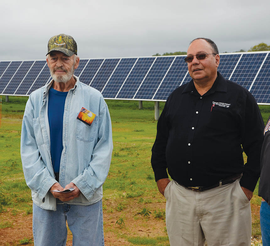 REMC Board Member Brian Hawkins (right) is pictured here with Rodney Tincher, owner of the property where the solar panels are located.